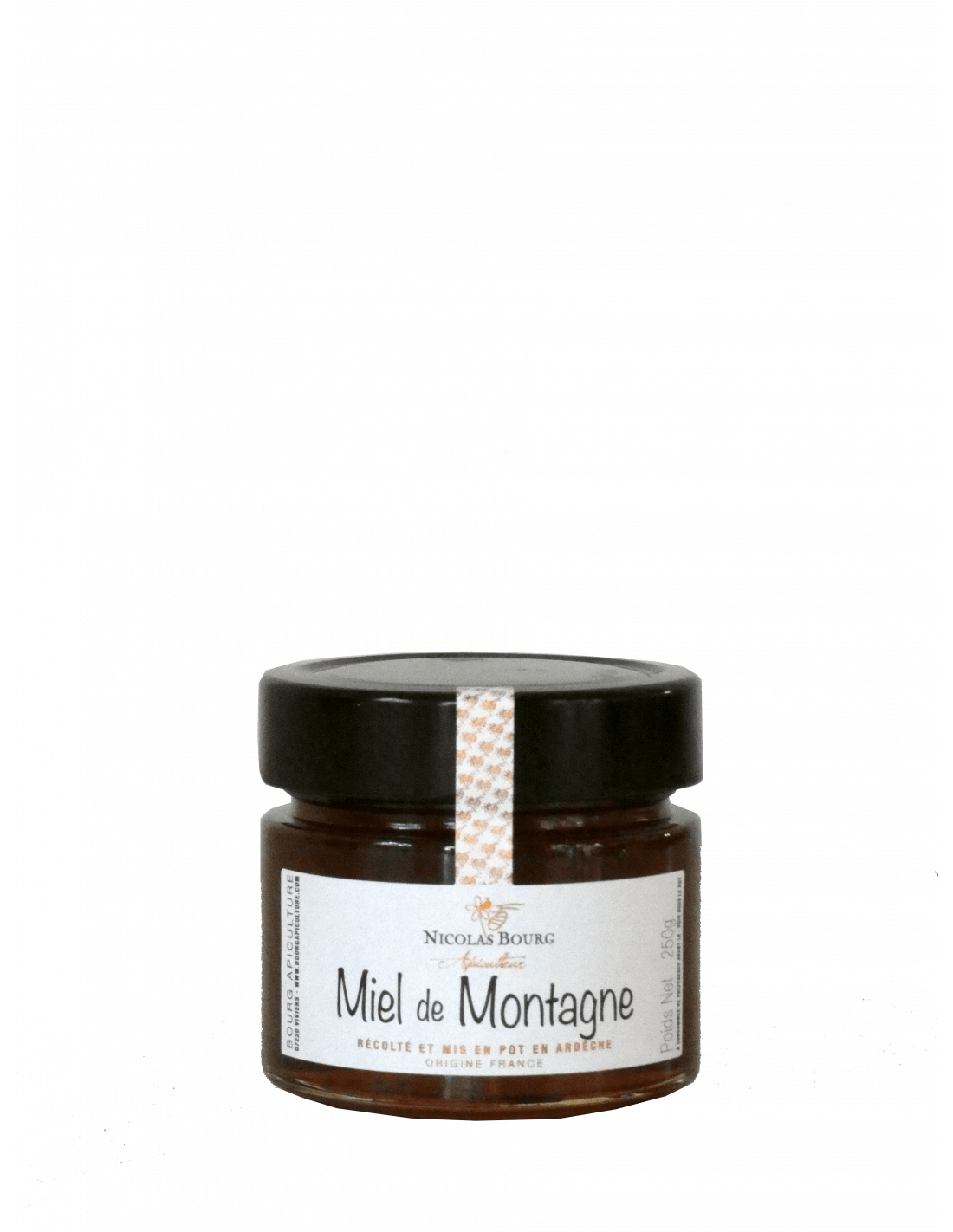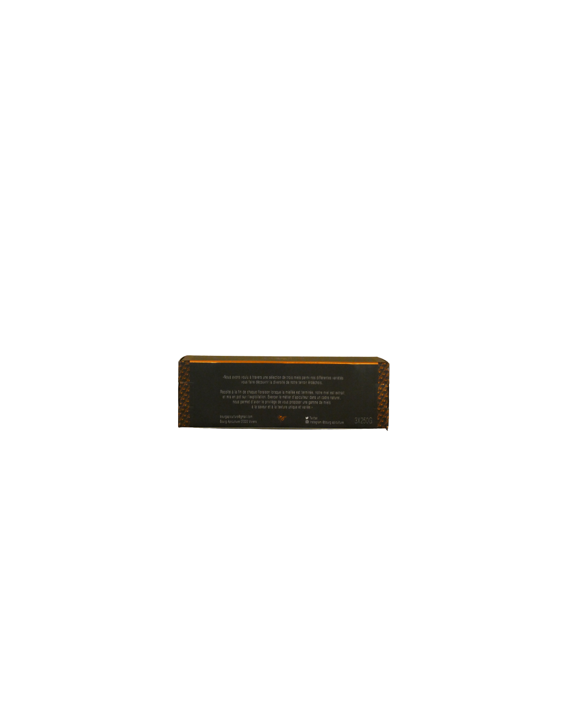 Coffret de trois pots de miel de 250 grammes de Bourg Apiculture.